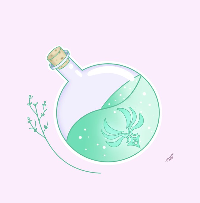 I'm creating Genshin vision elixir potions, to make into stickers! Starting with my fave element ;) 6 more to go!