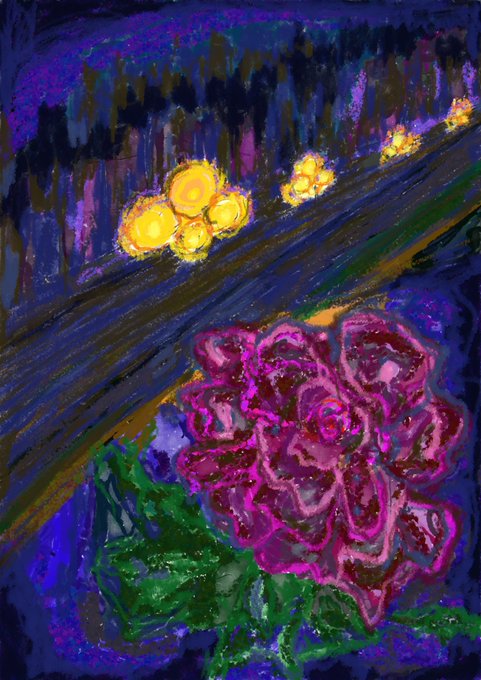 子供の頃に戻って一枚の写真を見てイメージのまま勝手に手を動かせました。幼少期にもらったスケッチブックとクレヨンでひたすらグジャグジャと意味のない塗り付けを繰り返した記憶が蘇る。そんな描き方ってとても楽しいのです。 #みんなで楽しむTwitter展示会