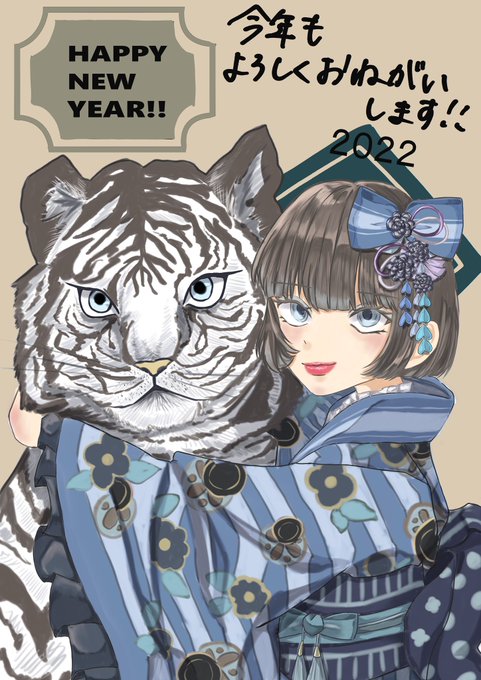#イラスト #あけましておめでとうございます #デジタルイラスト #HappyNewYear #虎 #ホワイトタイガー #着物 #絵描きさんと繫がりたい #厚塗り #絵柄が好みって人がいればいいなぁ