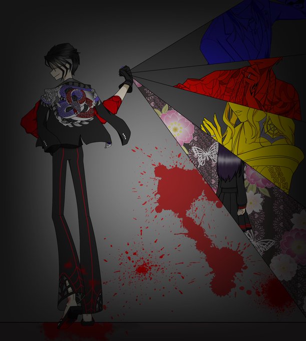 タグの情報量が多すぎる輪廻を描きました🕸(お嬢は姿がまだわからないので勝手な想像で描きました) #コンパスお絵描き #黒髪スーツメガネで独占欲が強い天然人懐っこい変態であみぐるみ作りが趣味の極悪非道の若頭