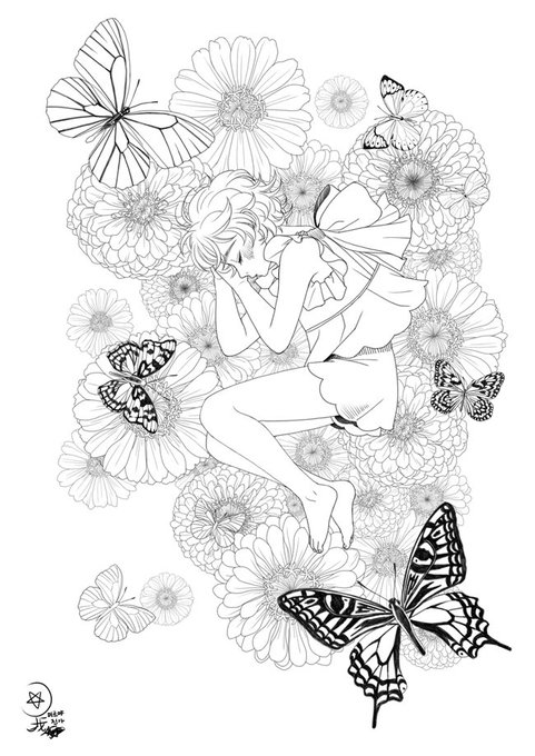일러스트 [주제 : 백일홍] 달콤한 꿈을 꾸고 있는 소녀 #일러스트 #그림 #소녀 #백일홍 #꽃 #미르야 #illust #illustration #art #イラスト