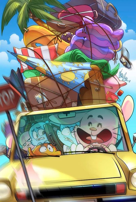 Well, I want to remember that once I written a story for the comic #Gumball (with art by Alessandra Patanè) and this was my cover for that book 💖 was a spring break special! I had SO FUN drawing this cover.