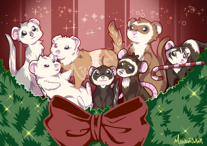 Another Christmas gift done for my mom, who's basically adopted my #ferrets and taken care of them and spoiling them rotten. She's been asking for a drawing of them for a while :'D