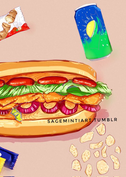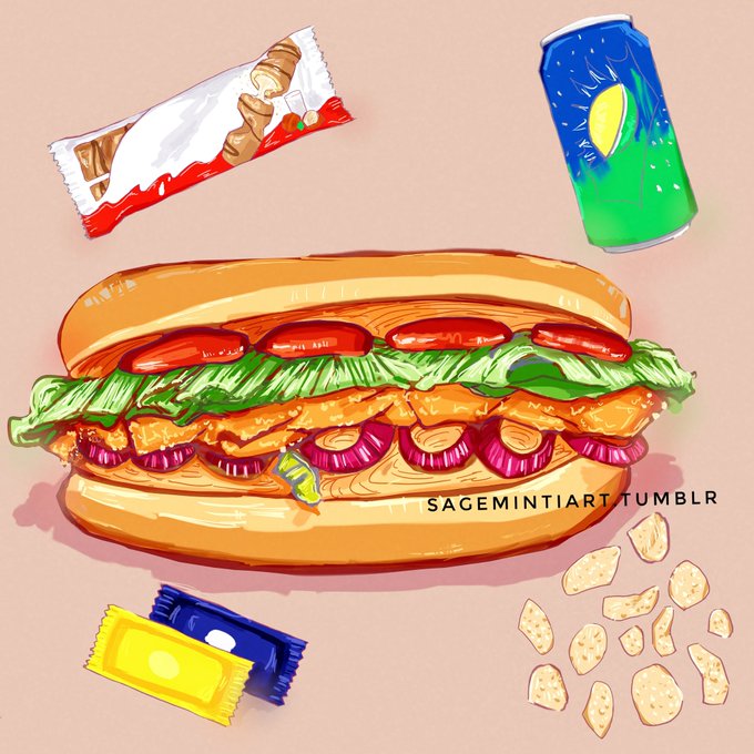 All done with that chicken sandwich illustration from earlier this month. I also added a few snacks around it because the page seemed too empty at first. #originalart #foodart #foodillustration #arttwt