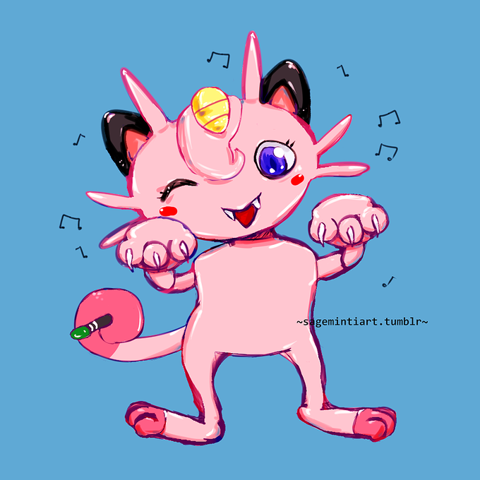 Finished a quick illustration/sketch of a Jigglyth (Meowth + Jigglypuff ) pokefusion