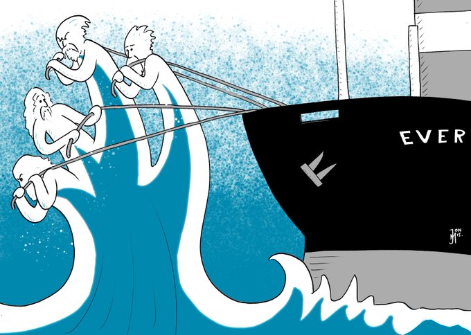 BLUE MEN OF THE MINCH + STUCK CONTAINER SHIP