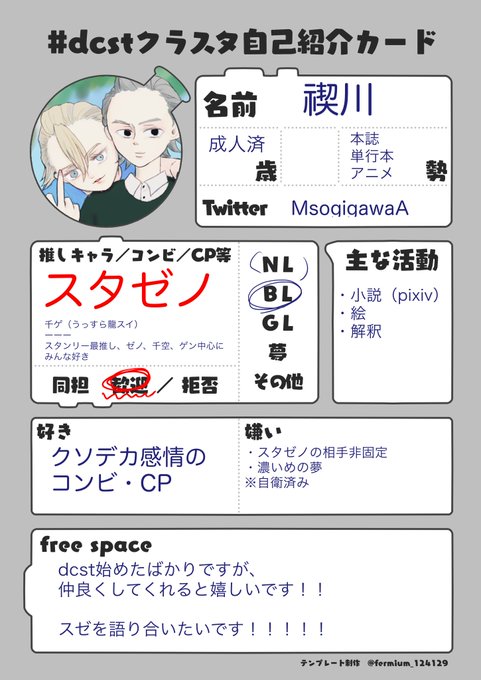 #dcst好きさんと繋がりたい #dcstクラスタ自己紹介カード #dcst絵描きさんと繋がりたい スタゼノ好きです💕 rt❤︎いただいたらお迎えに伺います〜 始めたばっかですがよろしくお願いします! 絵と小説を書きます ↓は小説 https://t.co/pTQcNWcTLI