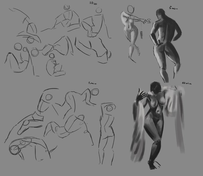 Gestures for this week. I'm happy that I'm slowly getting more comfortable with real dark shadows.