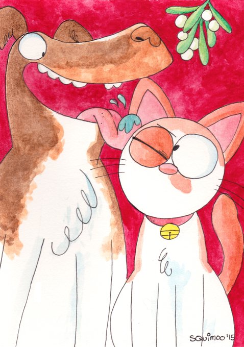 I painted a Christmas picture for my brother and sister-in-law of their Puppy, Toffi, and cat, Addi!
