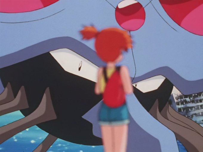 Tentacruel contemplates the girl's sincerity and sadness, and decides to forgive the humans, warning that next time it will show no mercy. Misty says goodbye to Tentacruel, watching as it slowly disappears into the water.