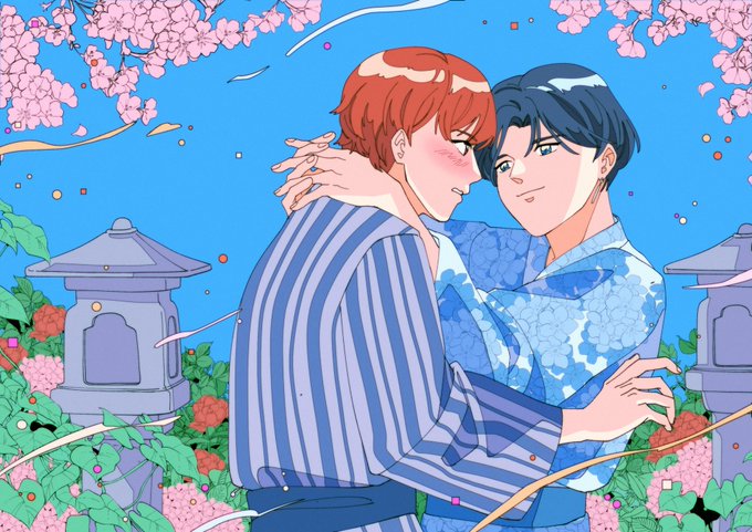 A sweet sweet comm made by @bunanawhale of my dear dear crackship 🤍💚 fjfjfj. Just. Look at Sena's eyes,,,, his smile,,,,,, and Ryoga's sleeping face,,,,,