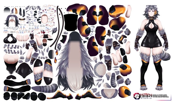 Vtuber model i made for @Michii_VT , it's completely split in pieces and ready to be rigged✨