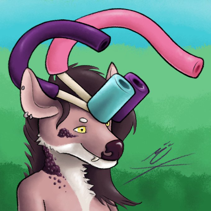 I draw @spaceforestdogo 's fursona with pool noodles in her horns xDDD