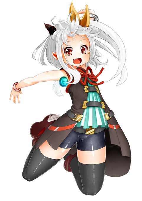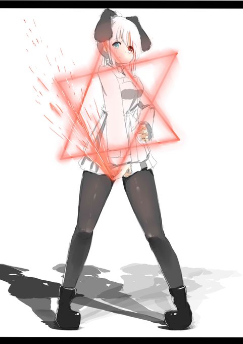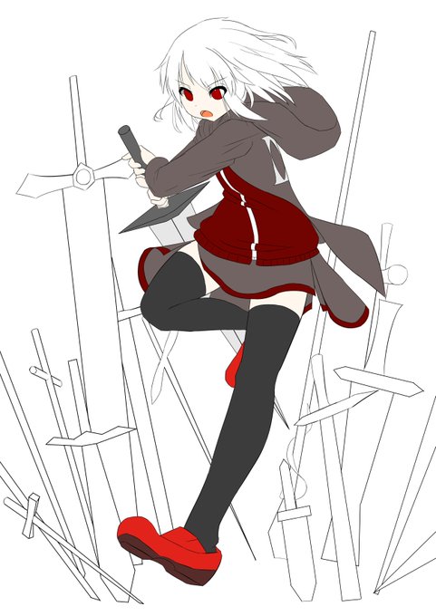 @kitunemusu キャラの塗りはだいたいこんな感じですー 白髪の髪の塗り方はいろいろありますが とりあえず影を秘色ベースにしてかなり白っぽくしてみました あとは武器類を塗って 修正できるところは修正して完成になります