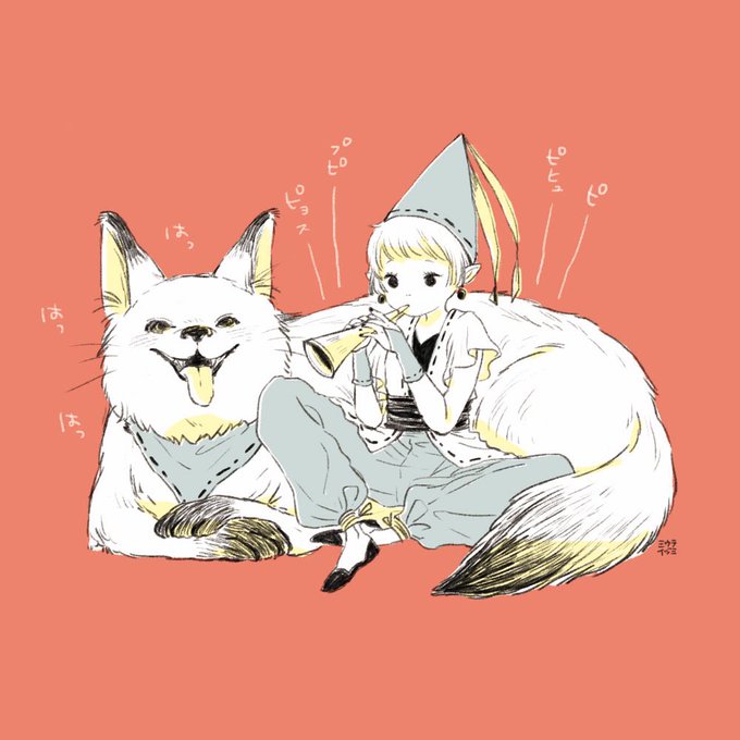 よく分かんない獣と笛の練習する