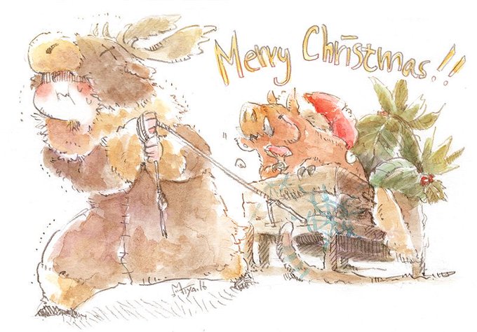 こっそりリクエストを承っておりました…ふじひとさん(@delpilot)よりサンタとトナカイ衣装なたまご君とウリです。あえて役が逆っぽいのがポイントです。そしてクリスマスなおまけらくがき!