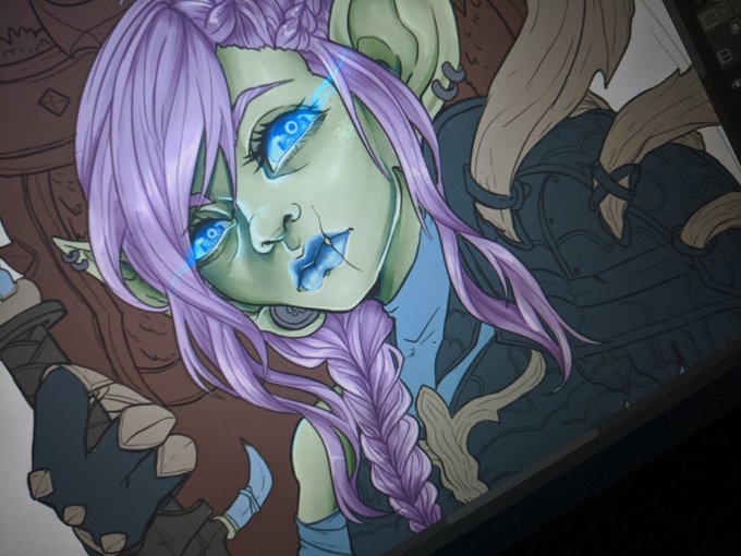 @KikiCanuck My girl Crysanthemum! I love her piercing eyes and lip scar, and of course her lavender braid is most noteworthy too! 💜💜💜