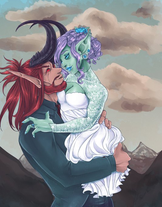 My last thoughts tonight art wise before I go to sleep, is about a lovely couple of hybrids in love.... #kaiusxmorska @Airanke I need to draw them again soon. 💜💙💚💜💙💚