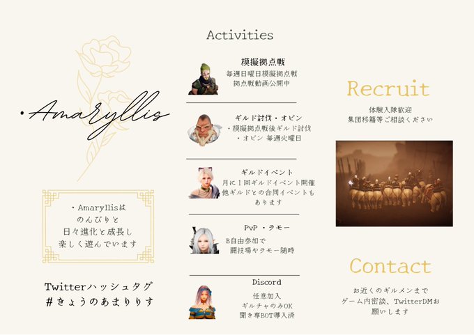 Amaryllisは30代を中心に20〜40代が仲良く在籍する、enjoyギルドです🤗