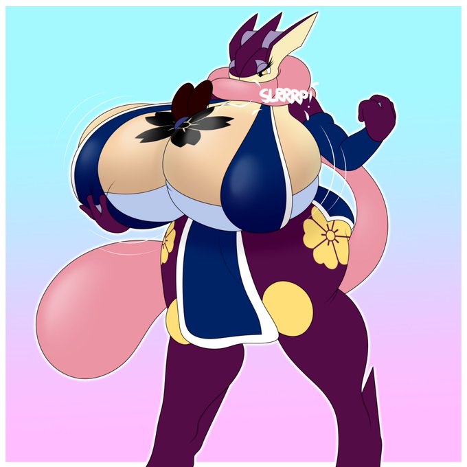 A commission for my pals SlickDratini and @Nanothingie , accidental Breast vore featuring the best boi Daishi and the big-tiddied froggo I designed a couple weeks ago.