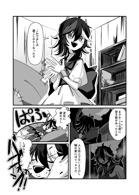 【告知】 11月12日の第十回博麗神社秋季例大祭で「き-37a」で頒布する新刊です。 正邪+愉快な仲間たちVSいつぞやかにデザインしたメカ正邪です。本文40P/モノクロ漫画/20部頒布で、東方アレンジ2曲が入ってるQRコードも付いて1000円です。 よろしくお願いします。 (サンプルはリプライ↓へ)