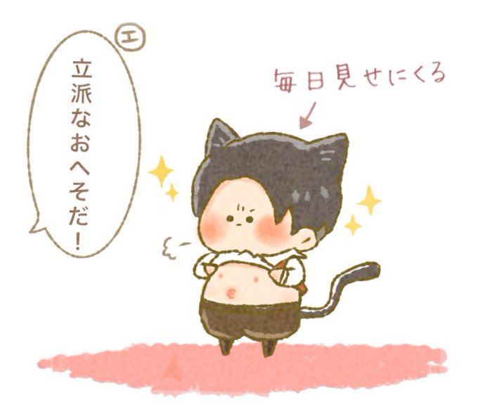 分隊長に誇らしげにデベソを見せに来るゴロリ (兵士長になったらデベソはへっこむ)