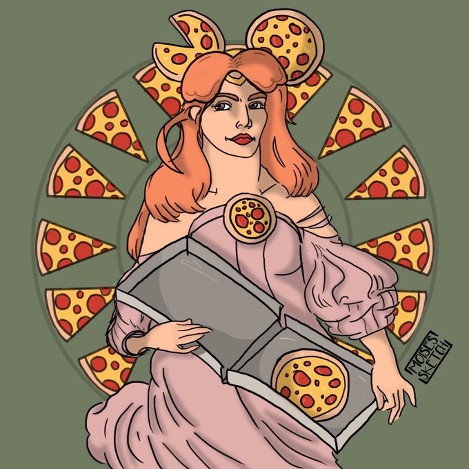Did @imzeferino #drawthisinyourstyle OC ‘Sailor Pizza’ 🍕 based on Alphonse Mucha's Daydream illustration.