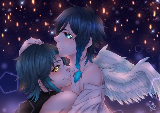 这张的话是温迪通过精神连结安抚魈……吧?我也画到不知道自己在干嘛了ry