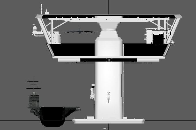 Friendly reminder that scale can be a weird thing in Ace Combat, here's one of the platforms in M11 / Fleet Destruction / Siren's Song next to a Nimitz-class / Kuznetsov and with the B-52 inside it