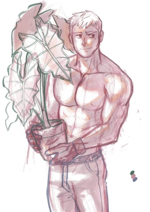 Next up is our sexy shield dad Leius. Who took a liking to these shield shaped leaves. Tbh I do not own the plant so I cannot study and properly illustrate them (unlike the previous🌿) but its pretty okay eh?