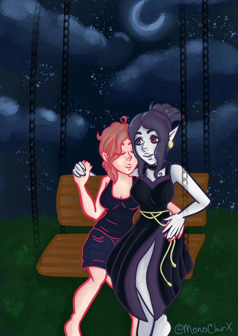 Starting to post my art on here. But here’s my latest art piece that I did on @clipstudiopaint characters belong to @ChibiDonDC and @M1SSMI I really like the texture in the piece. #vampair #thenight #theshowdown