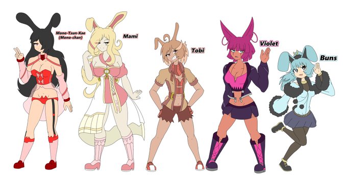 Individual character art for Mami, Tobi, Violet, and Buns! 🐰