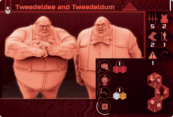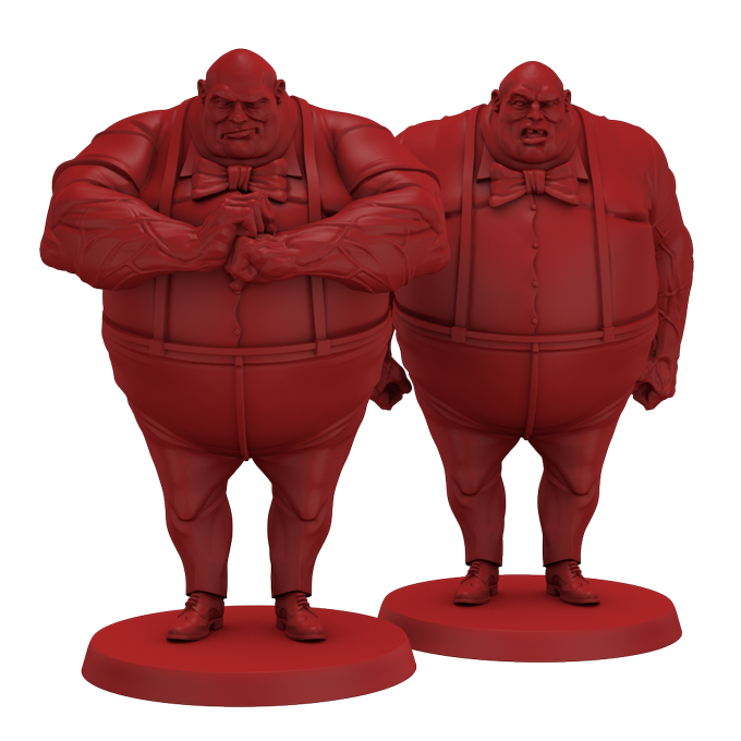 Tweedledee And Tweedledum seem to be twins but are actually cousins who look alike and use this resemblance to pretend to be a single person, thus always having the perfect alibi. Pretty chubby, they have the unique ability to bounce around like balloons.