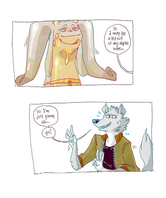 A recent sequence of my wolf guy Russell (whom I honestly rarely use in things these days) running into a Goodra version of @Rumpcha while trying his hand at being a Pokemon trainer! Let's just say he's the one that ends up getting caught...
