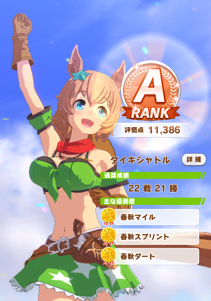 今日のタイキ 地味に評価点上がってきてるけど因子ガチャはダメダメ