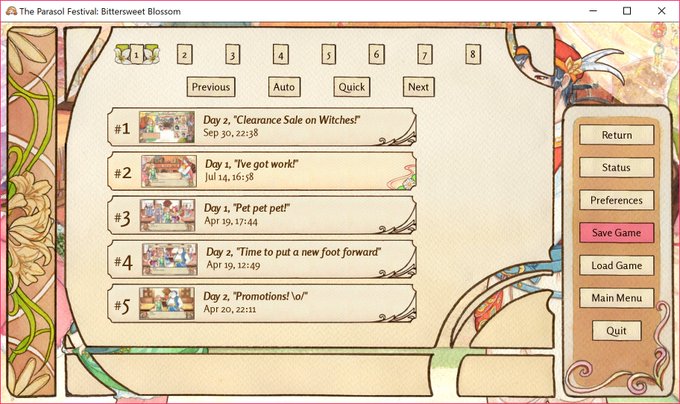 People seem to like my status screen so here are some other UI elements in The Parasol Festival: Bittersweet Blossom