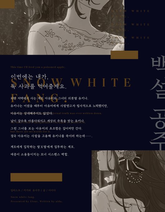 아이다 작가님의 신작, 애증이 소용돌이치는 모녀 서스펜스 백합 '백설 공주의 송곳니'가 리디북스와 YES24에 출간되었습니다!