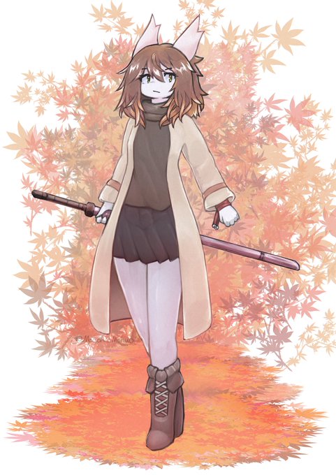 紅葉背景の剣士ちゃん