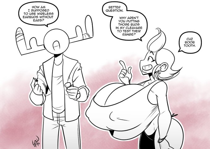 @cinnabus Why not! I am a moose that draws curvy women, occasionally growing and somewhat saccharine. But they are LARGE so enjoy! (Also I draw the art for @BreastBuyComics)