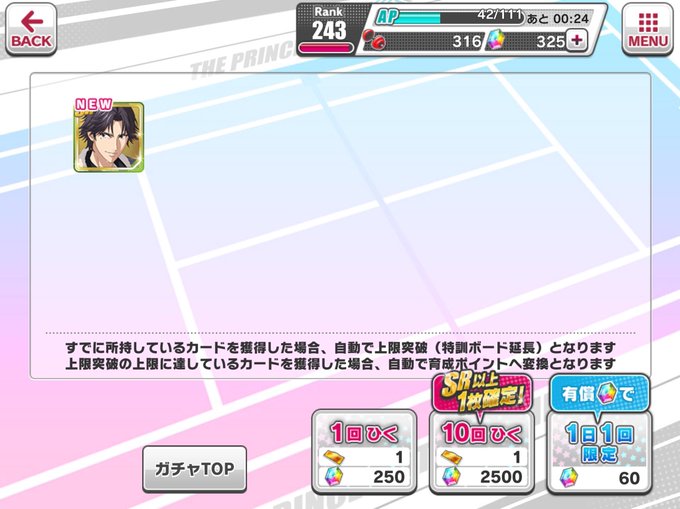 FC単発で初めてSSR来たーーーー!! 財前ありがとう✨