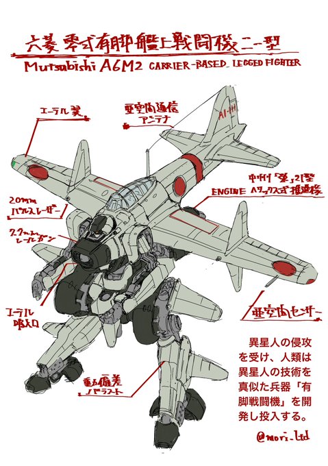 有脚零戦背面を模索中。 これで、だいたいコミティアに載せようとしてるメカのラフは出来たかな?(こっからが長い道のりなのだが)
