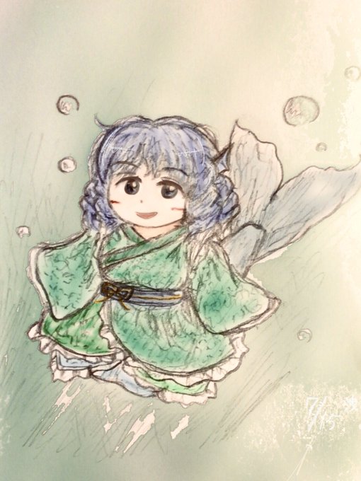 【毎日更新!お絵描きコーナー】 298日目 「鰙姫」 コメント:ワカサギは動物食性なんですよね。例えば虫など...あっ #洩蔵の落書き帖 #わかさぎ姫