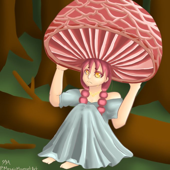 Week 14's art trade theme with @SirSaladBar and @SirSaladBar was to make a character based off a plant or mushroom~!