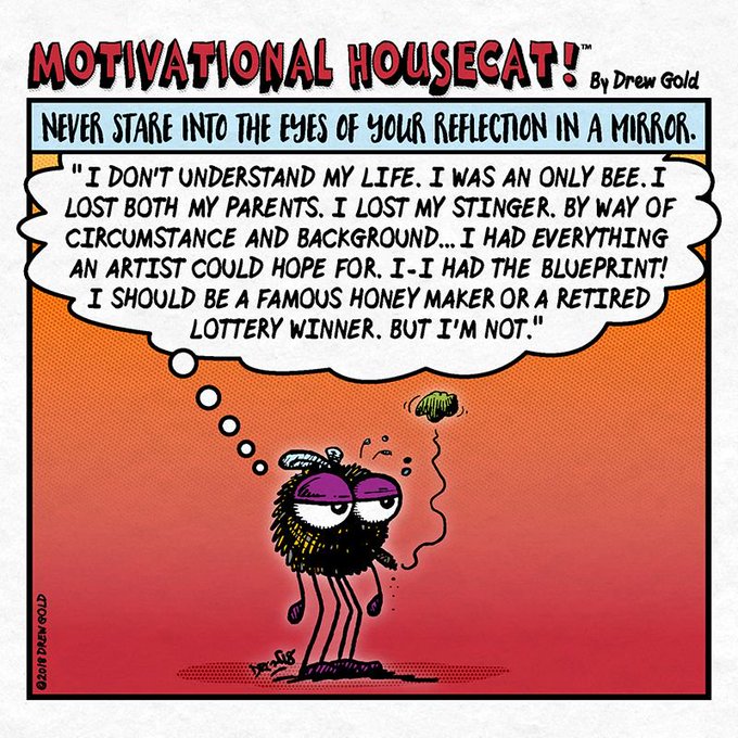 Come see what the enlightening and lovable calico cat “Professor Meow Meow” and her pal "The Angry Bee" are up to in the latest "Motivational Housecat!™" strip! @DrunkDuck
