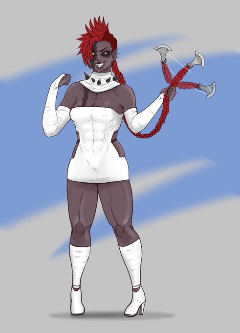 @Kueshka Thank you for the opportunity! Here's my character Mawghana. She's a large muscular Orc warrior who loves fighting and testing the limits of her strength. She is also overly caring which means she often oversteps other's personal boundaries.