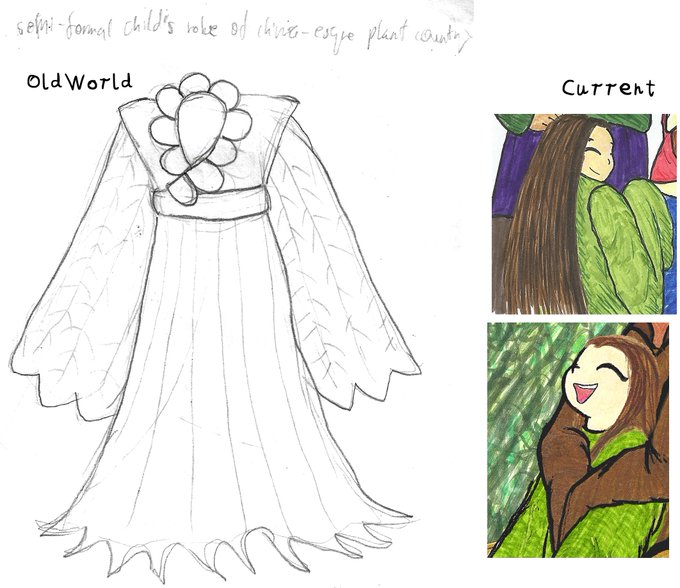 My concept, Estranged Elementals, involves characters from another world stuck in ours but I never designed what they were wearing before the shift. For Flora I was trying evoke flowers, childish and vaguely high class, and ancient China.