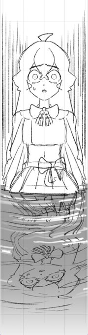 最近も中国で絵コンテを担当している「小魔头暴露啦!」が更新中。昨日更新されたこのコマは、水辺で相手の言葉にショックを受ける。という文章だったのだけど。水に映る自分が波紋によって心が揺らぐ。っていう絵が出てきた時は気持ちよかった。そして完成形で作画が細かい仕草とか追加してくれた。