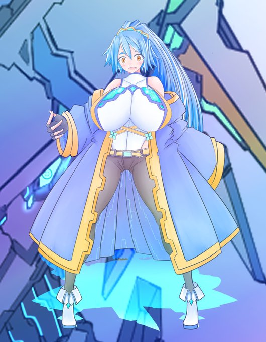朝方描いたうちよそ落書き。同じ名前、青髪キャラなのに胸囲(驚異)の格差社会を見せつけられたウチノコと気付いてないよそのこちゃんというアレ