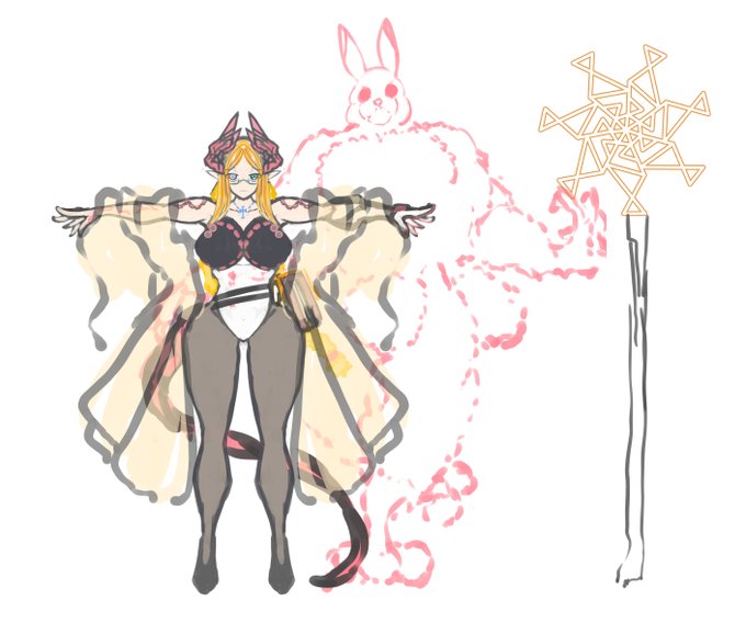 #フォロワーから要素貰って魔術師を作る 頂いたお題とりあえず全部突っ込みつつ描いた魔術師さん(魔術師ってなんだ)(一部要素を複合したりしてますすいません)