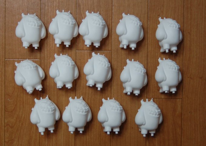 レジンキャスト1缶で16匹、中14匹をWFで販売予定。これから最初にヌいた気泡ある1匹をパテ埋めして展示用にあまり得意でない塗装を開始、もっぱらスプレー缶と筆塗りで。